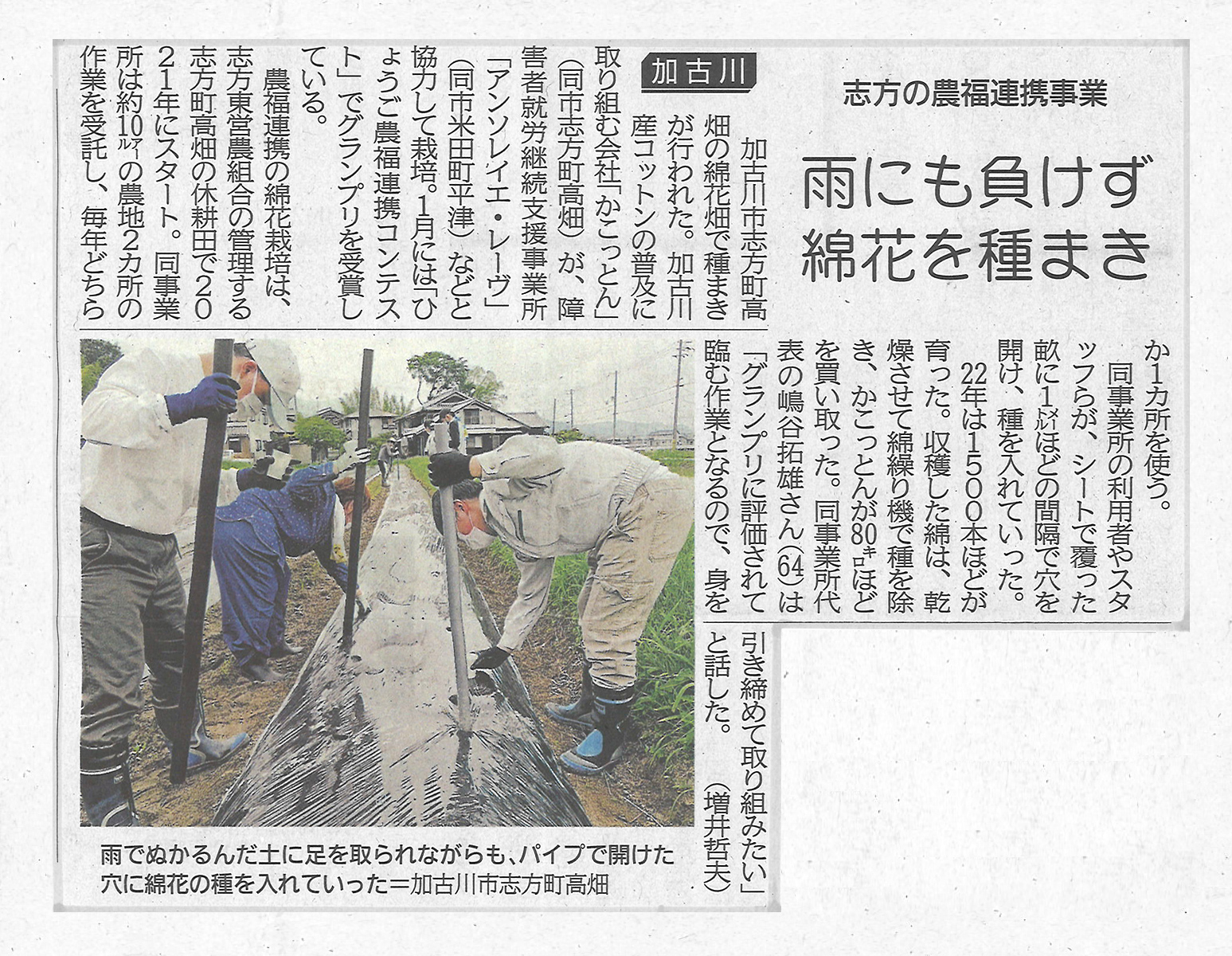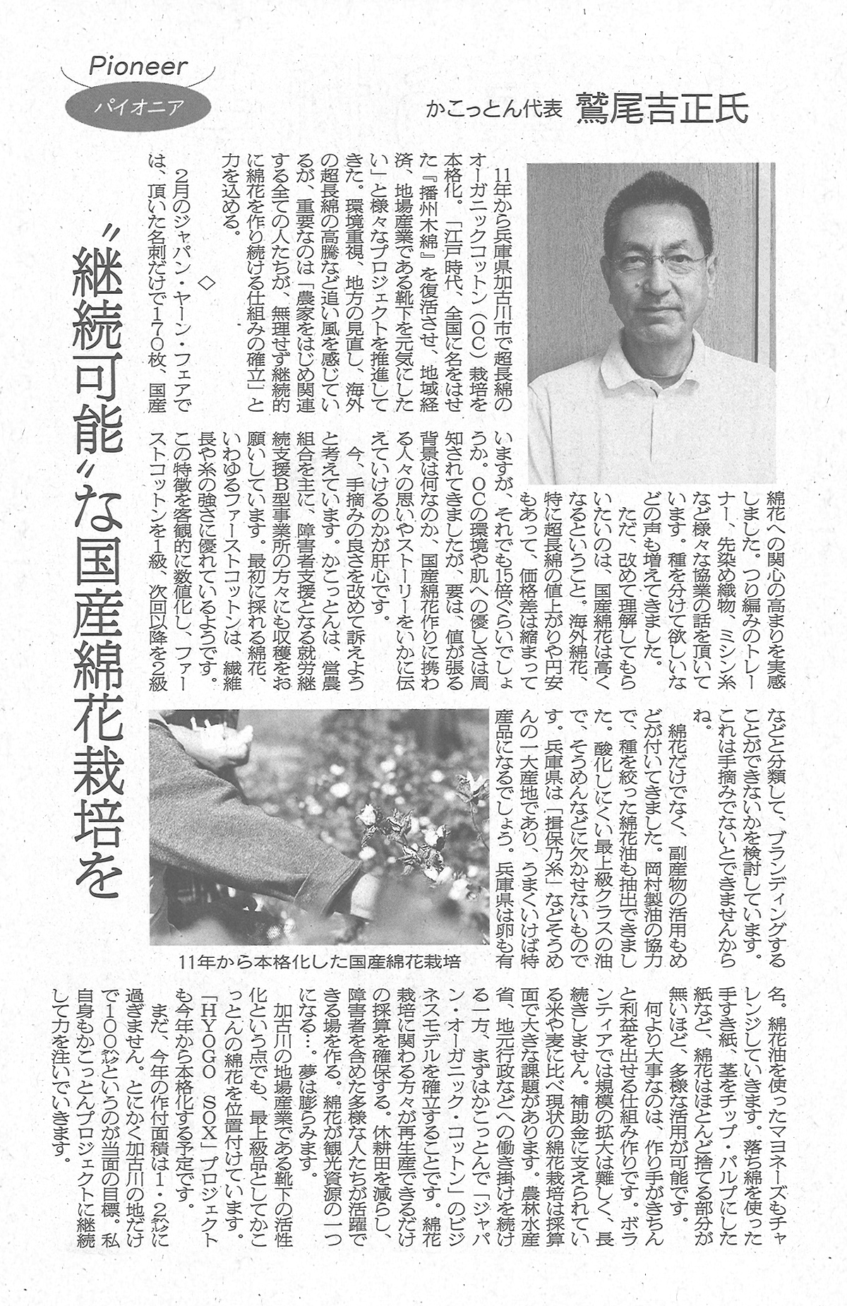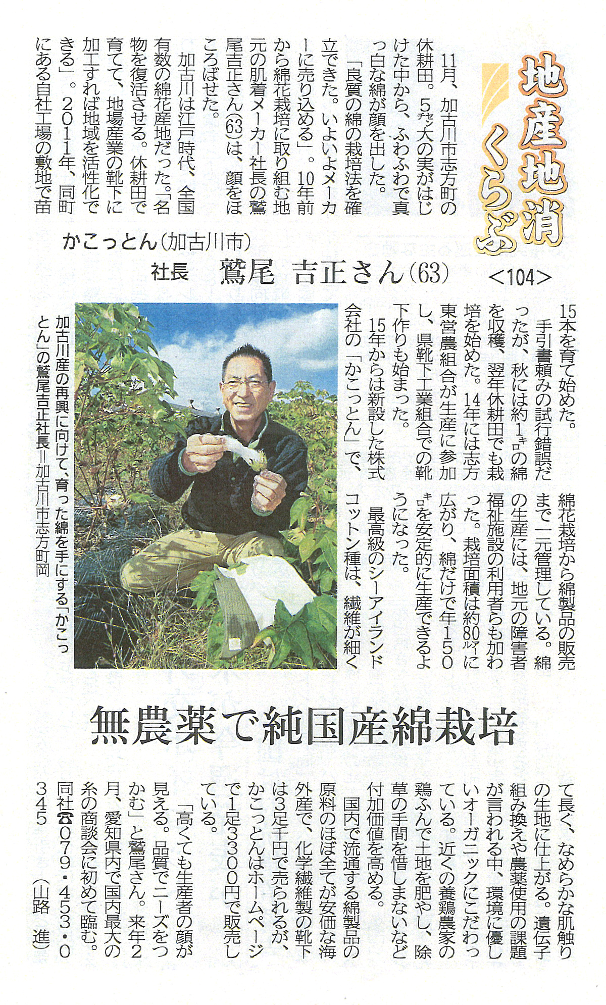 加古川を中心に2011年より綿花栽培に取り組んでいます、エシカルでサステナブルな仕組み作りで地方創生を実践し新たな産業を興したいと考えております。