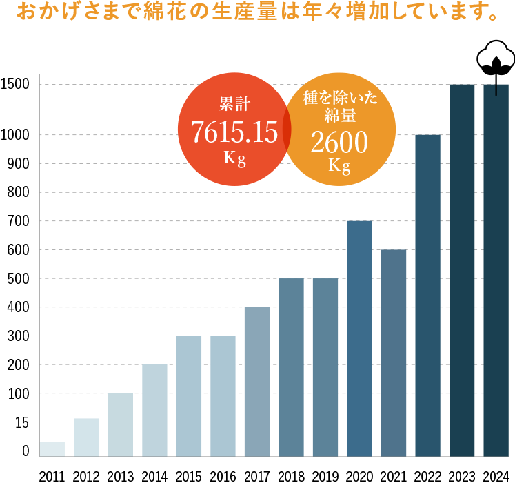 かこっとん株式会社は、KACOTTONプロジェクトの中心となる綿花栽培の土台を作り、地域の繊維関係のヒトや資源をつなぐ会社として、2015年11月に設立されました。